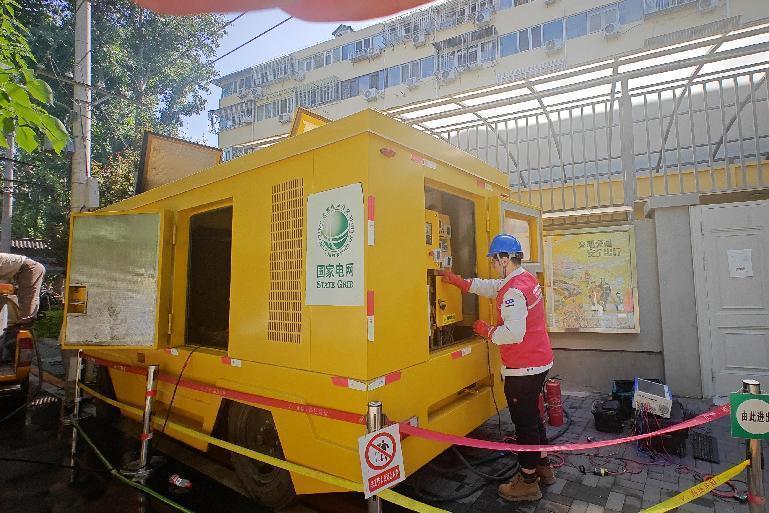 国网北京电力员工校验城市移动应急发电车快速启动性能。
