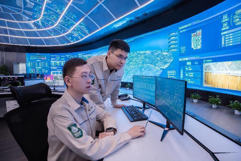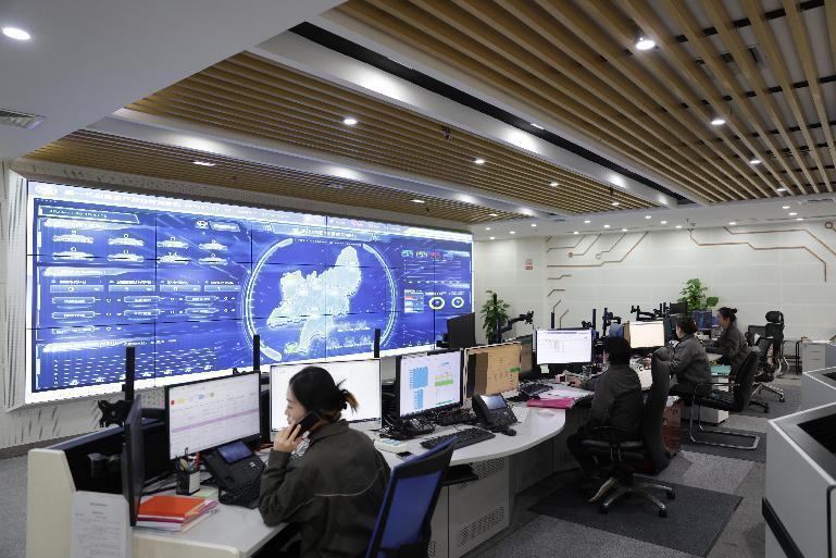 国网重庆北碚供电公司员工在供电服务指挥大厅监测配网运行数据。