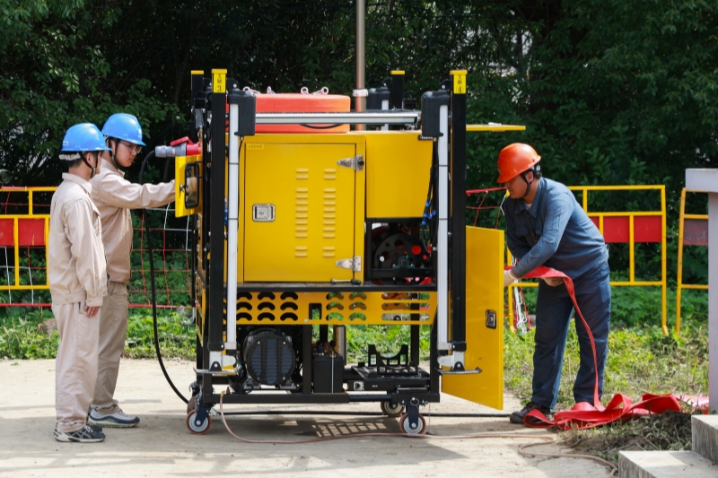 国网江苏无锡供电公司员工在220千伏电缆隧道外开展防汛应急演练。