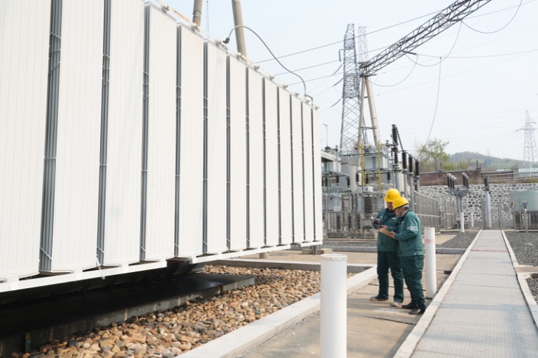 国网江西超高压公司员工在1000千伏变电站开展500千伏一次设备定检作业。