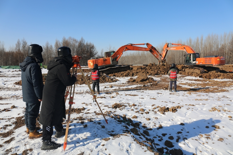 重庆铜梁1000千伏变电站工程节后复工,作业人员对1000千伏区域GIS基础进行复测。