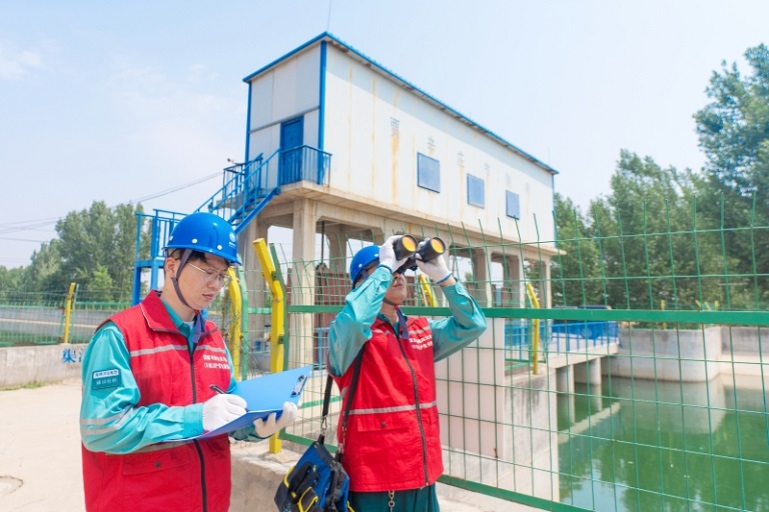 国网河北石家庄供电公司员工在石津灌区检查供电设备。