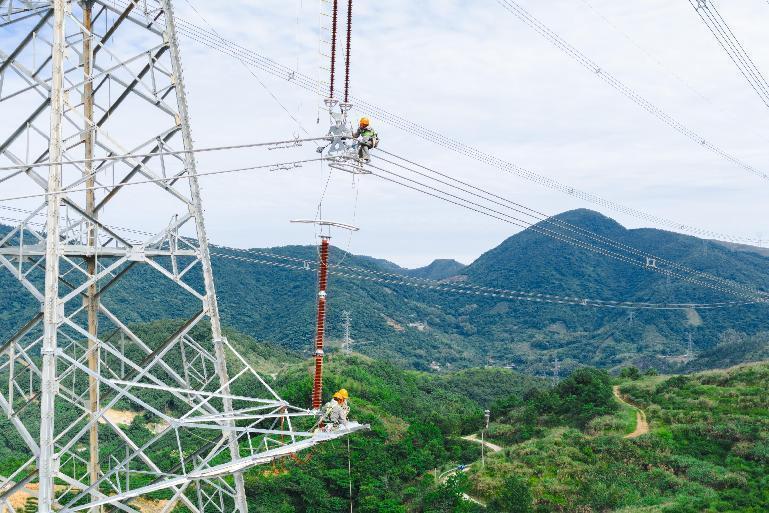 国网浙江温州供电公司员工在500千伏线路开展精细化检修作业。