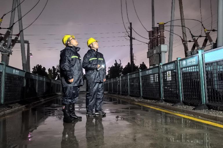 国网山东东营供电公司员工在变电站内开展雨后特巡。