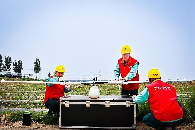 国网天津高压公司员工对特高压线路开展无人机巡检。