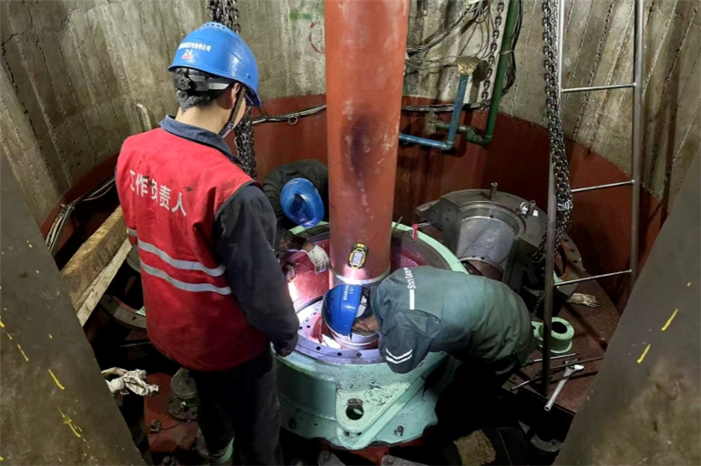 国网西藏发电检修分公司员工在水电站开展水轮发电机组检修作业。